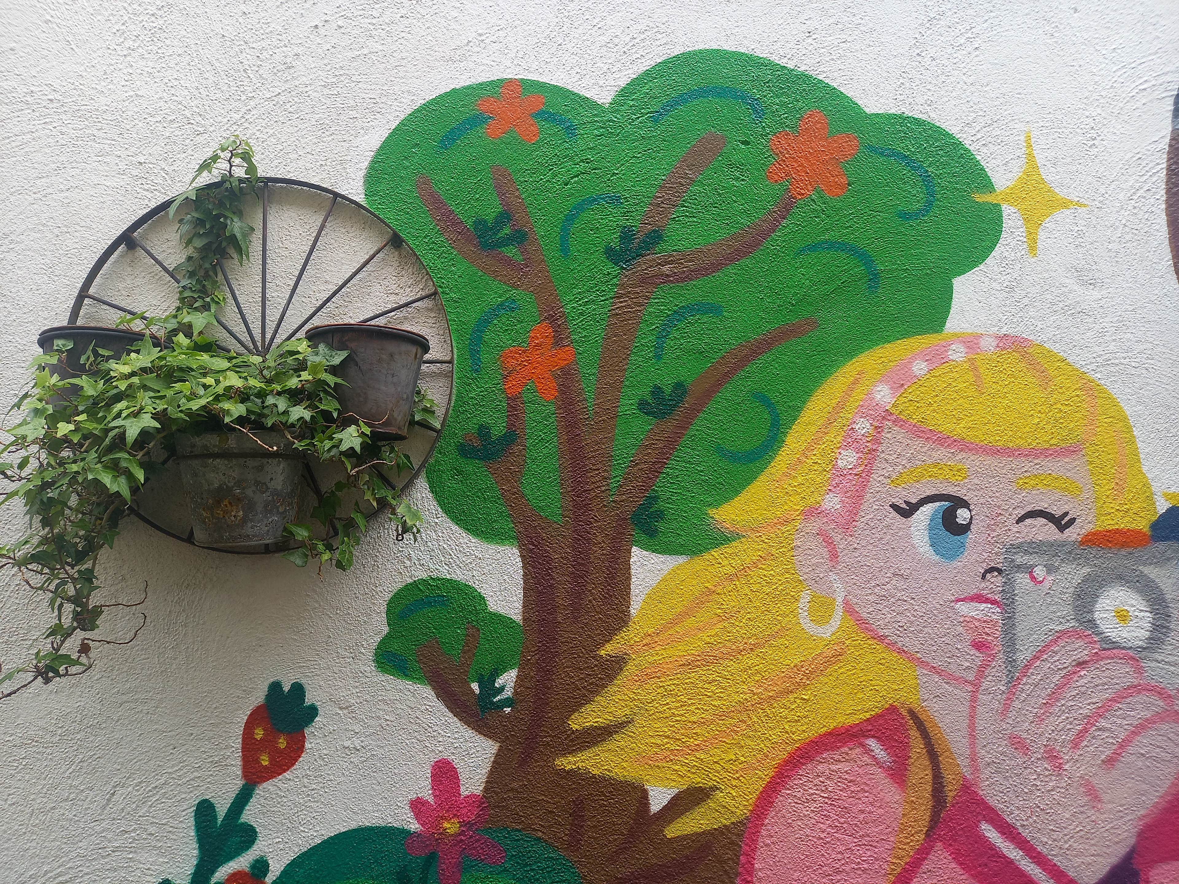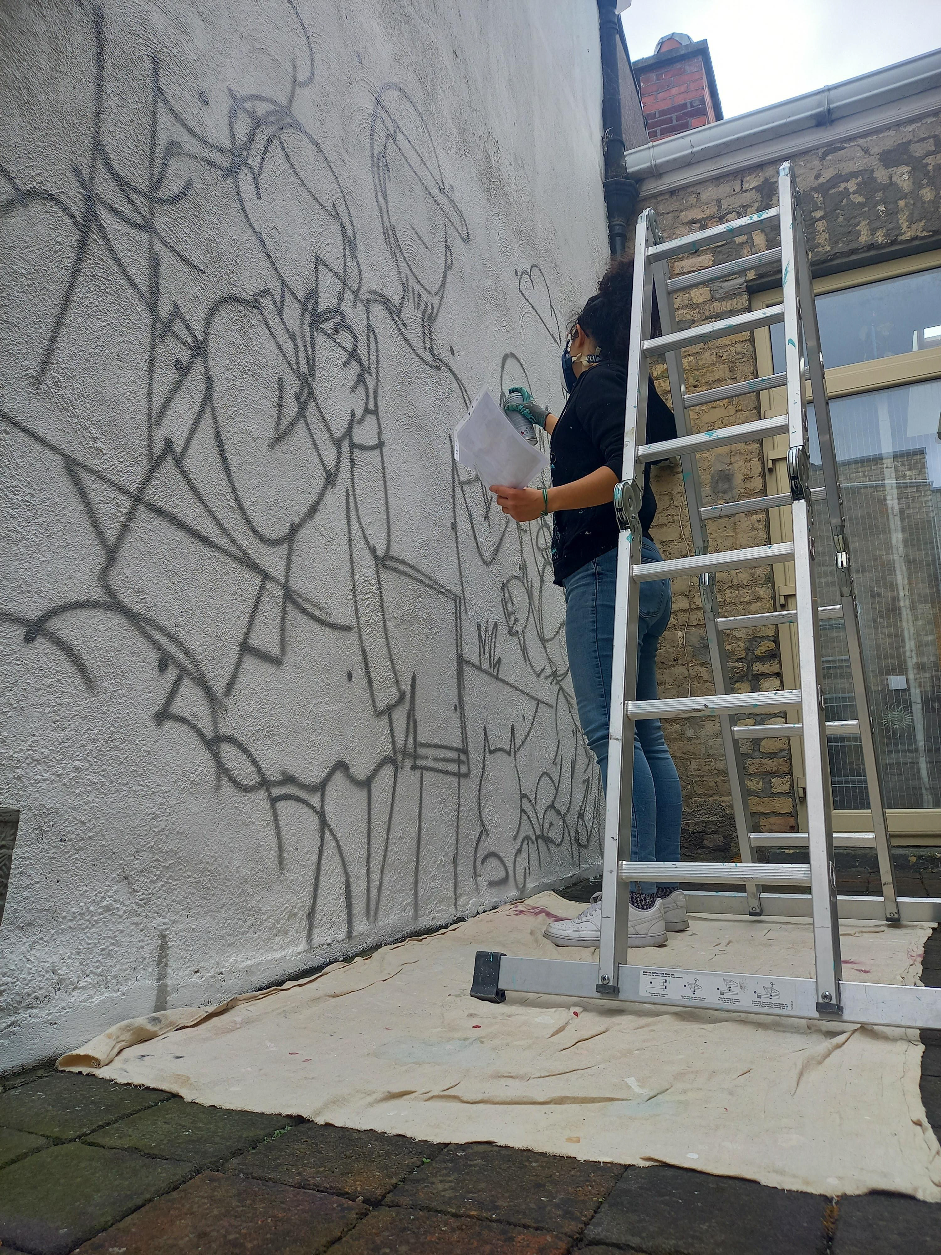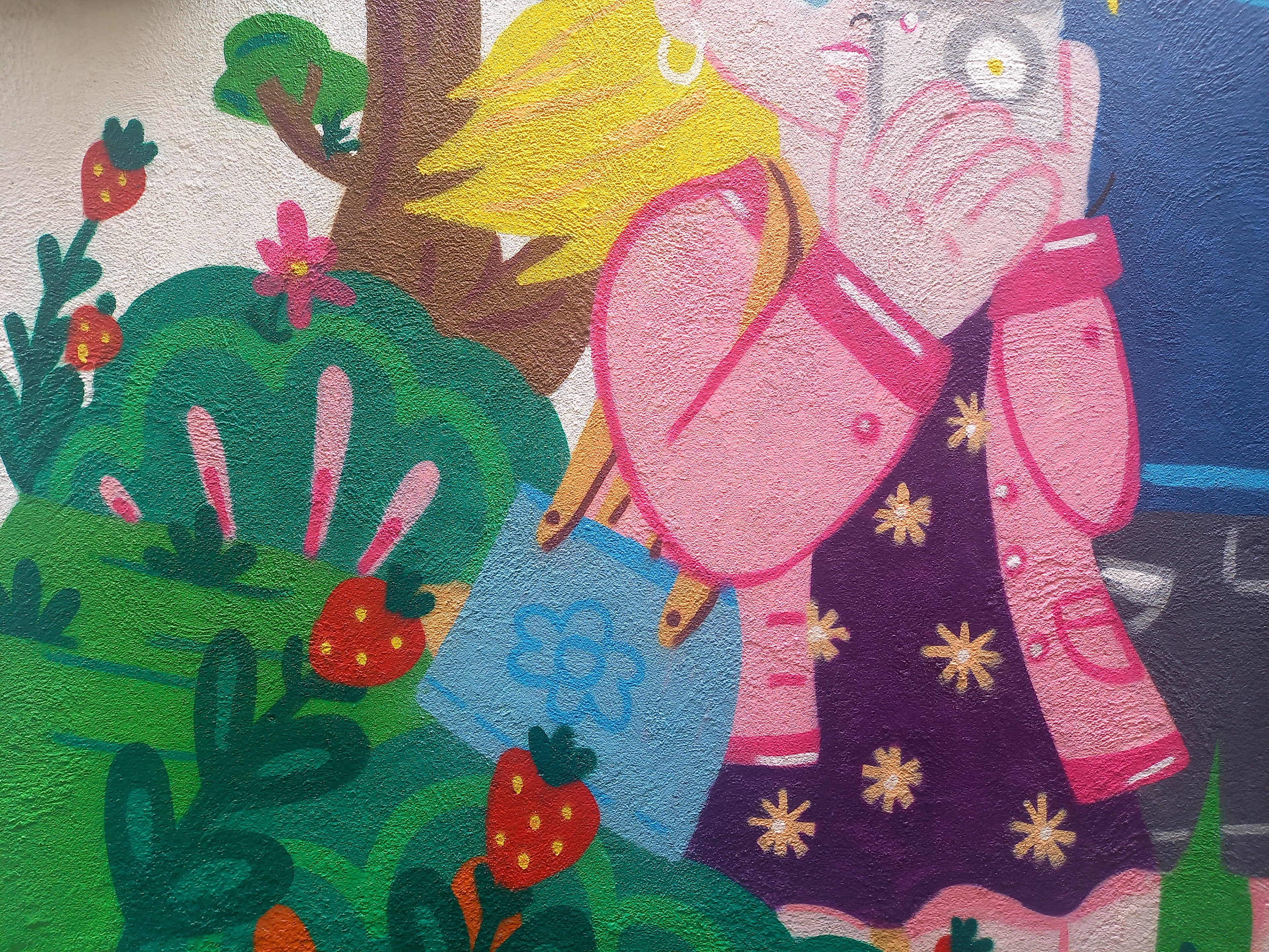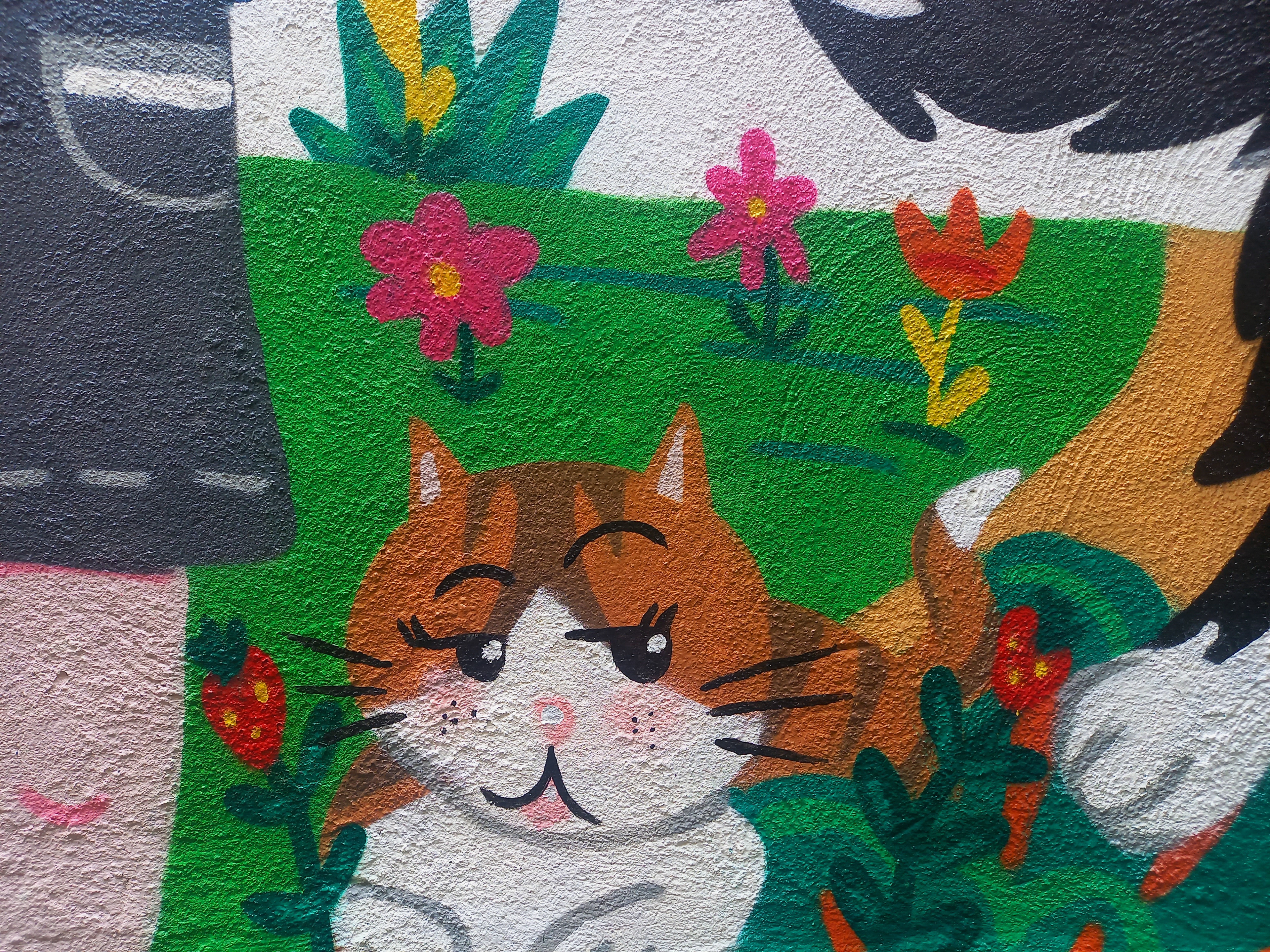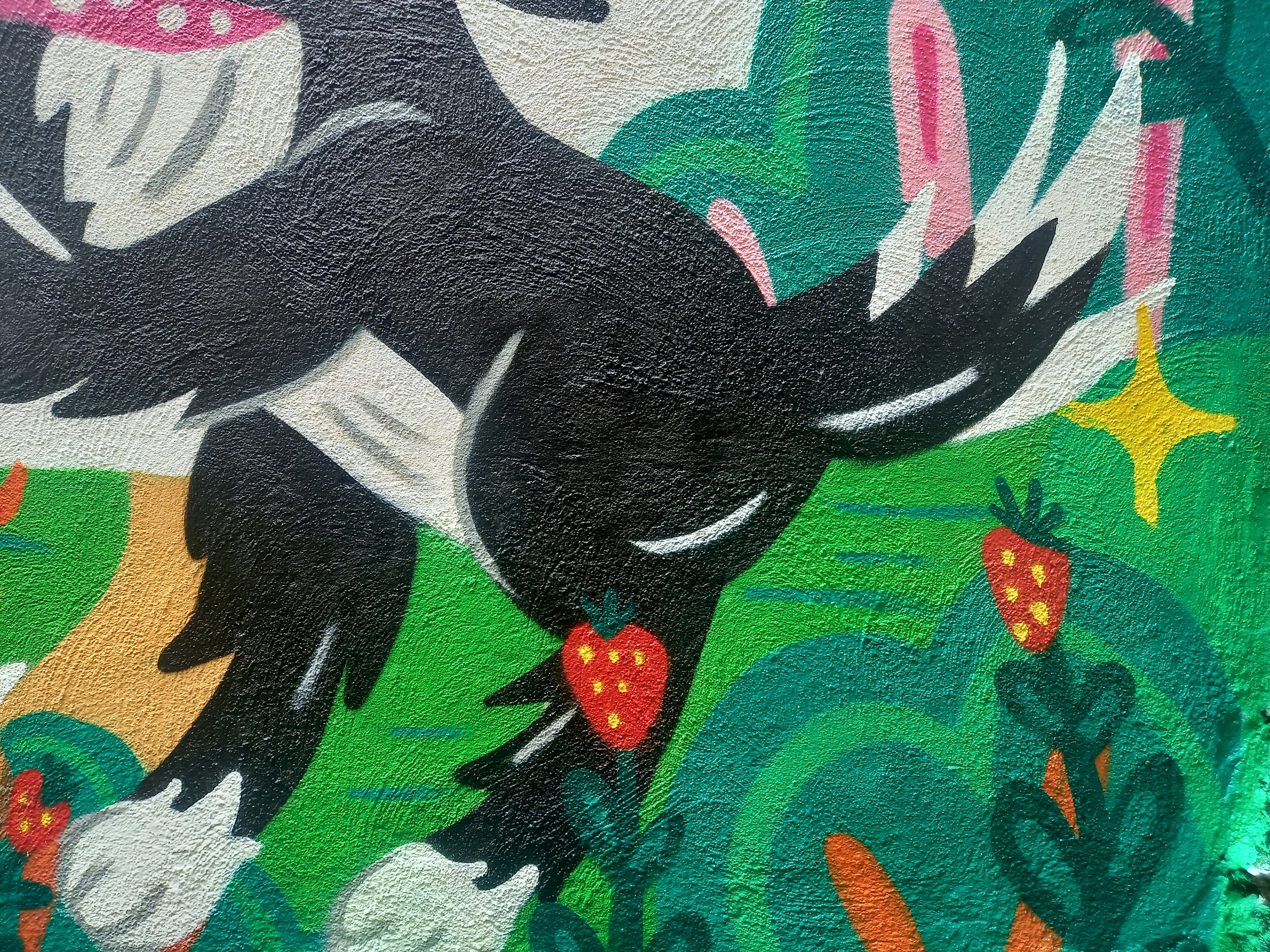 Painted in a home backyard, inspired by family members and their fun pets, Zowie the border collie loves to play with the ball and is really active. Lauren, instead, prefers to chill.
